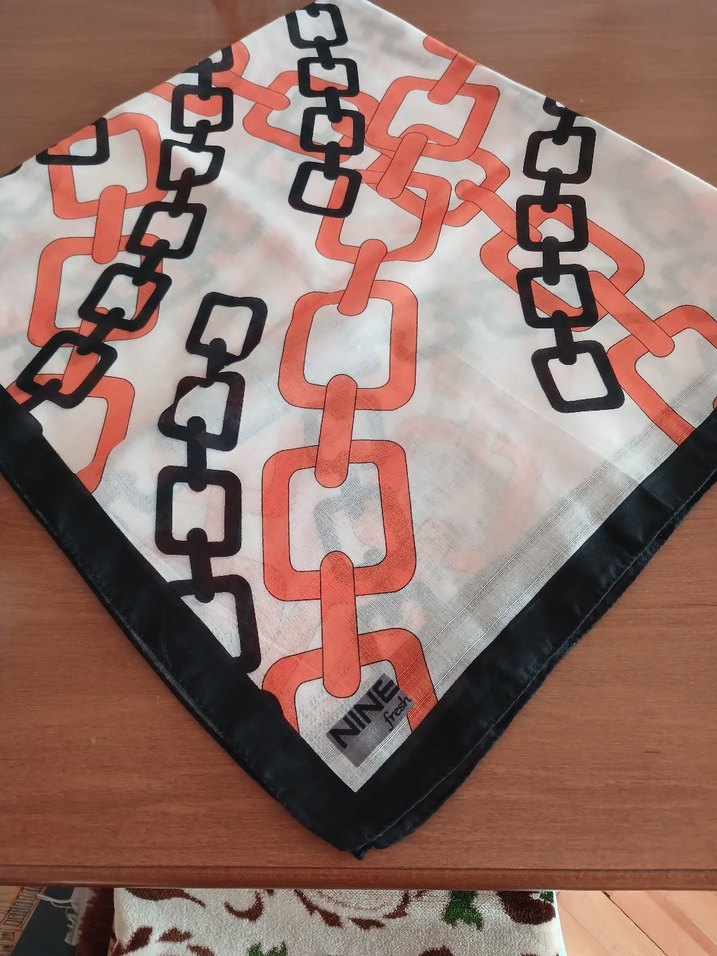 Kadın fular, parlak çok renkli zincir desenli, yumuşak sentetik kumaştan, sokak stili ve avangard modaya uygun.