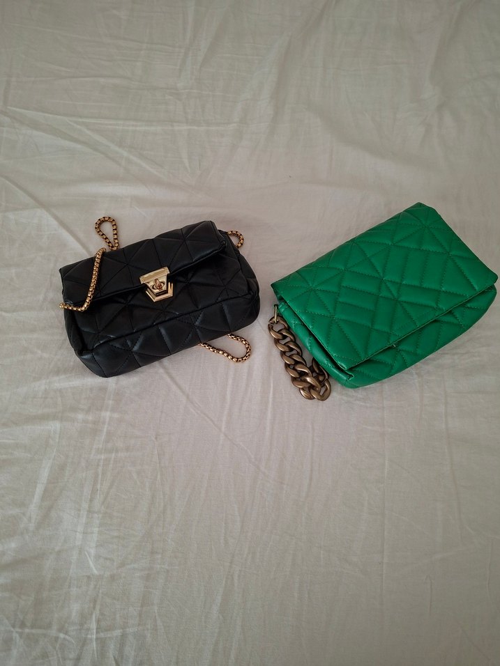 siyah 1 2 kere kullandım yeşil sıfır. Koyu yeşil deri kadın çanta, zincir detaylı ve kapitone desenli. Sokak stili ve günlük kullanım için uygun, modaya uygun ve trendleri takip edenler için ideal.