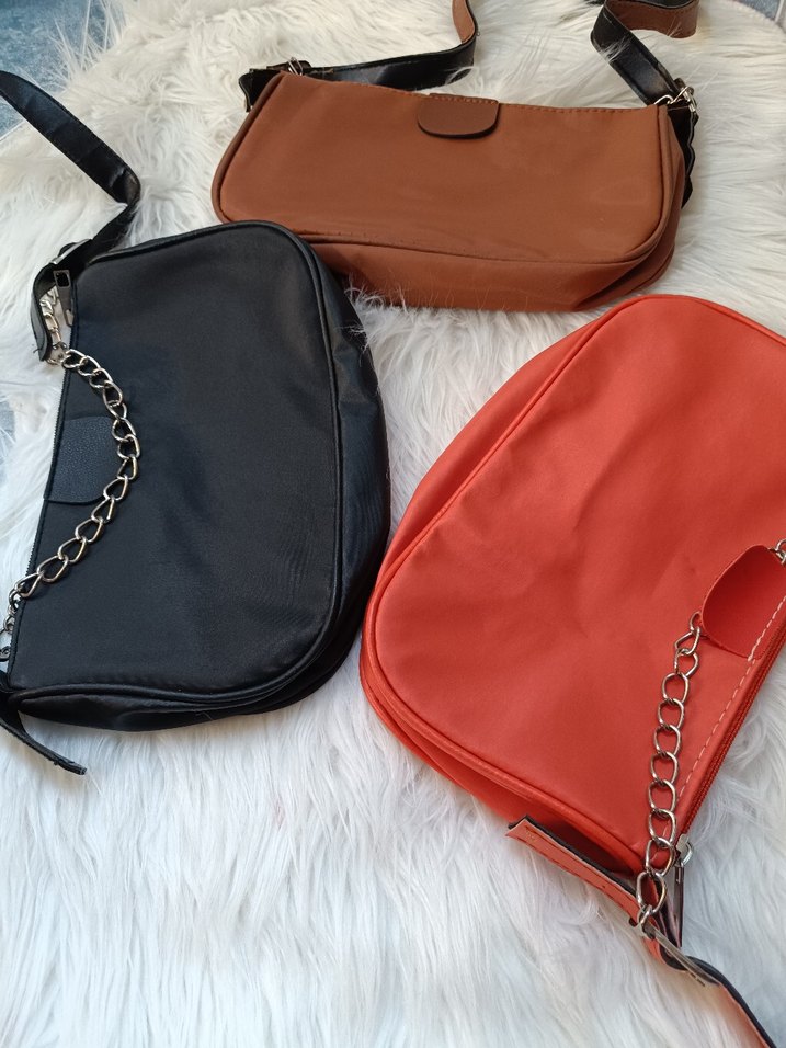 Yumuşak deri kadın çantaları, zincir detaylı, kahverengi, siyah ve turuncu renk seçenekleriyle günlük sokak stiline uygun.