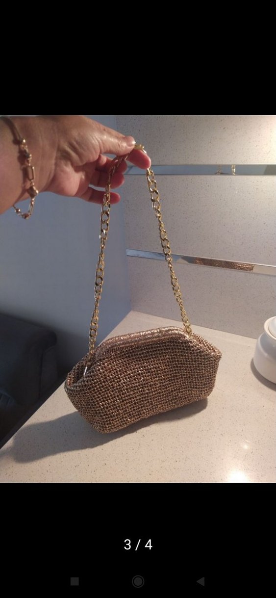 Zincir Detaylı dore metalik ipten örgü Kadın Portföy Çanta