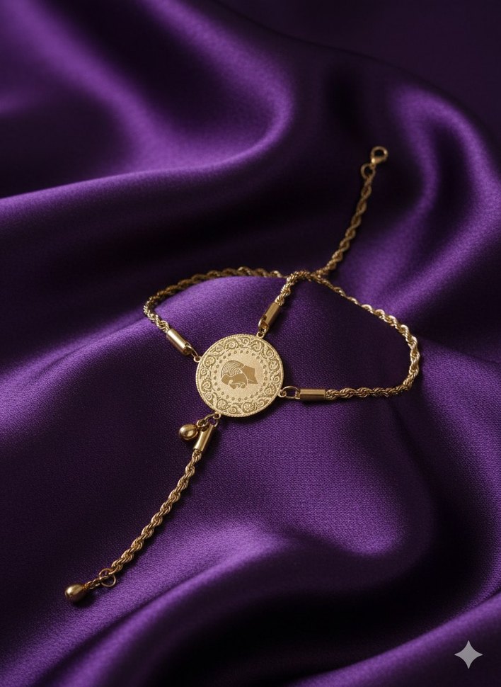 İşlemeli vintage tarzda, zincir detaylı altın renk bileklik, günlük kullanım için uygundur. ✨