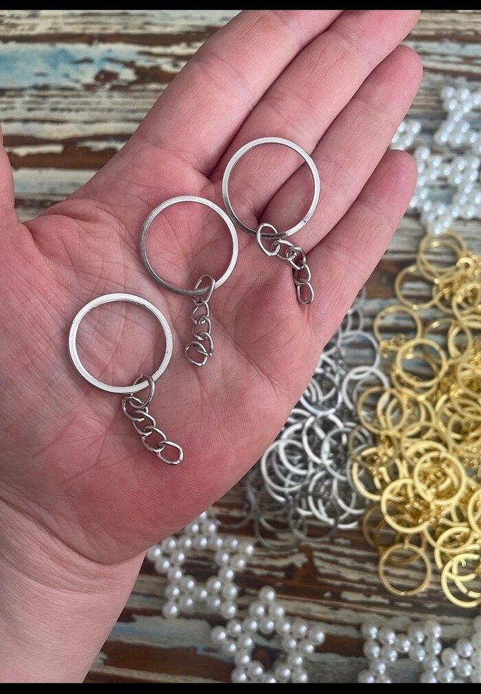 100 adet gümüş rengi zincirli anahtarlık halkası