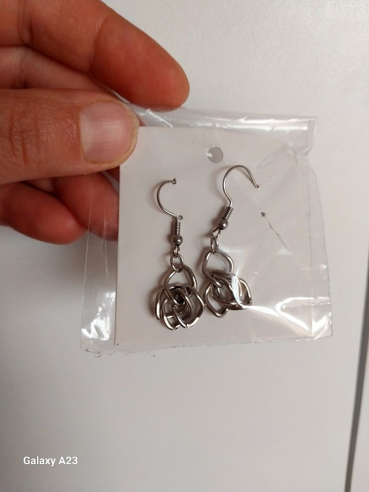 Gri renkte, zincir detaylı, minimalist tasarıma sahip normal uzunlukta midi küpeler. Günlük kullanıma uygun, çelik küpe.