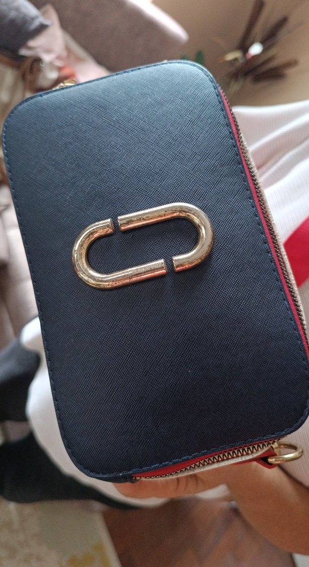 Minimalist tarzda, zincir detaylı, altın renk tokalı gri deri kadın çantası. Desensiz ve günlük sokak modasına uygun.