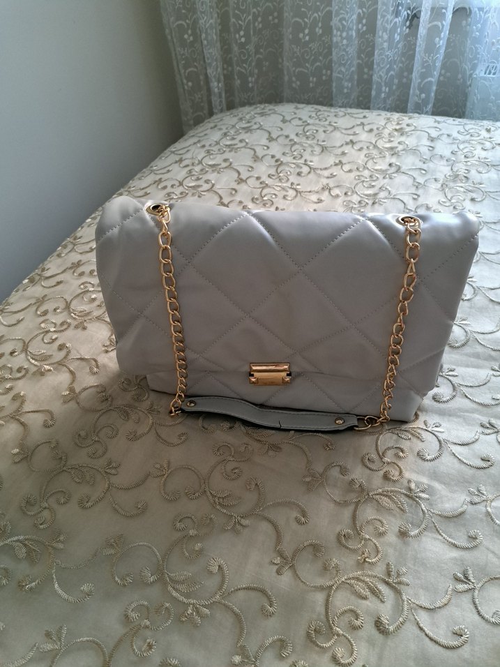 Gri deri kadın çanta, zincir detaylı ve modern klasik tasarıma sahip, günlük kullanım için Paris tarzı şıklık sunar.