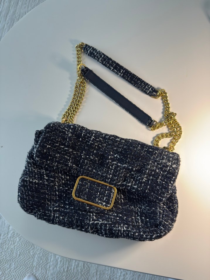 Zincir Detaylı Gri Desenli Kadın Çanta
