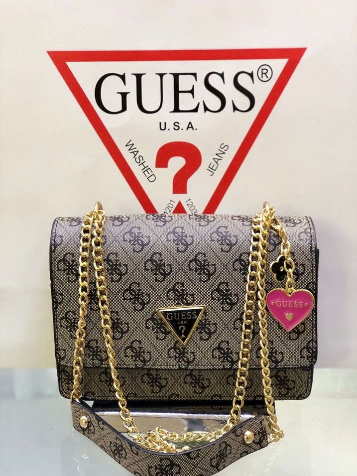 Gri renkli, baskılı desenli Guess kadın çanta, zincir detaylı ve sentetik kumaştan üretilmiştir. Paris sokak modası ve klasik şıklığı yansıtır. Günlük kullanıma uygundur.