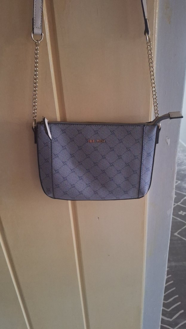 Gri renkli, baskılı desenli kadın çantası zincir detayına sahiptir. Sentetik kumaştan üretilmiş, minimalist ve klasik şıklık için uygundur. gerçek nine West marka