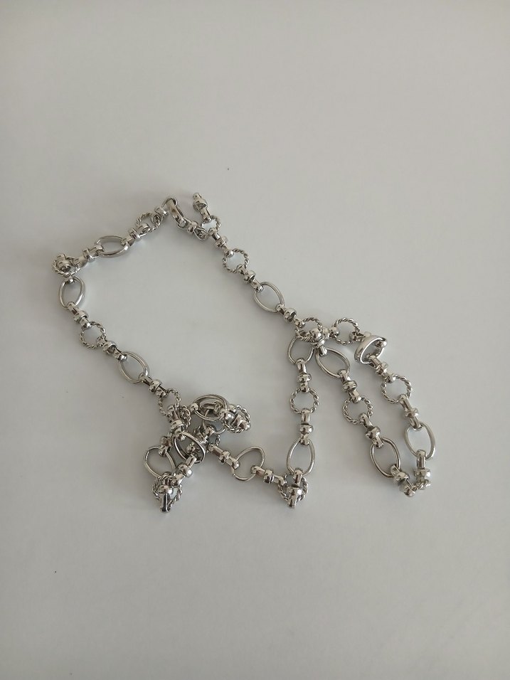 Gri renkte, zincir detaylı ve yılan deseni bulunan kadın el zinciri, günlük kullanım için karşı kültür tarzını yansıtır.