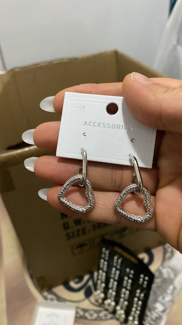 Kısa uzunlukta, zincir detaylı ve gri kalp desenli minimalist sokak stili küpe.✨ Bilgi için DM