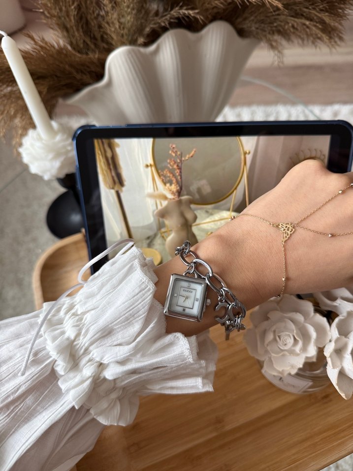 Zincir Detaylı GUCCİ Beyaz Kadın Kol Saati