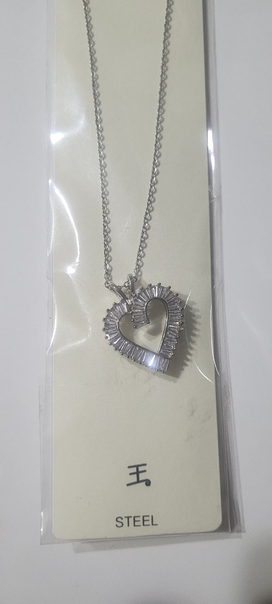 Gümüş renkli, zincir detaylı ve işleme desenli kalp şeklinde kolye, romantik buluşmalar için uygun. ✨ Paslanmaz Çeliktir