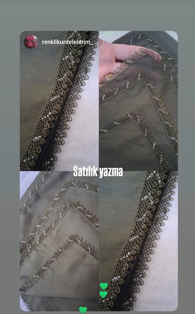 Yumuşak sentetik kumaştan haki kadın yazma, kenarlarında zincir detaylarıyla bohem tarzda. Avant-garde tasarımı trendsetterlar için uygun.