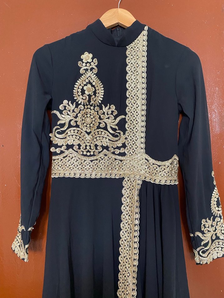 Zincir Detaylı İşlemeli Siyah Uzun Tesettür Elbise