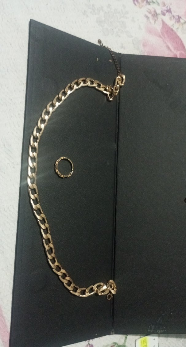 Parlak altın renkli, yılan desenli zincir detaylı kadın boyun zinciri. Minimalist stile uygun, günlük kullanıma elverişlidir. ✨ve yüzük