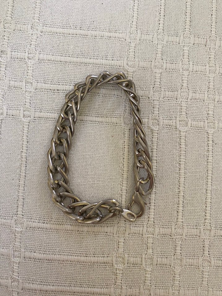 Günlük kullanıma uygun, zincir detaylı ve altın renkli, vintage tarzda kadın bileklik. Gri tonlarında ve desen içermeyen tasarım. ✨