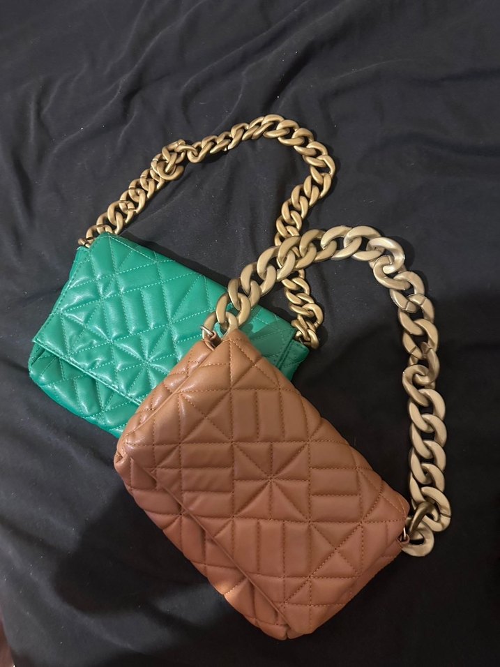 2li fiyat Zincir detaylı, pastel renklerde kadın deri çantalar. Kapitone desene sahip, günlük ve sokak stili için uygun.