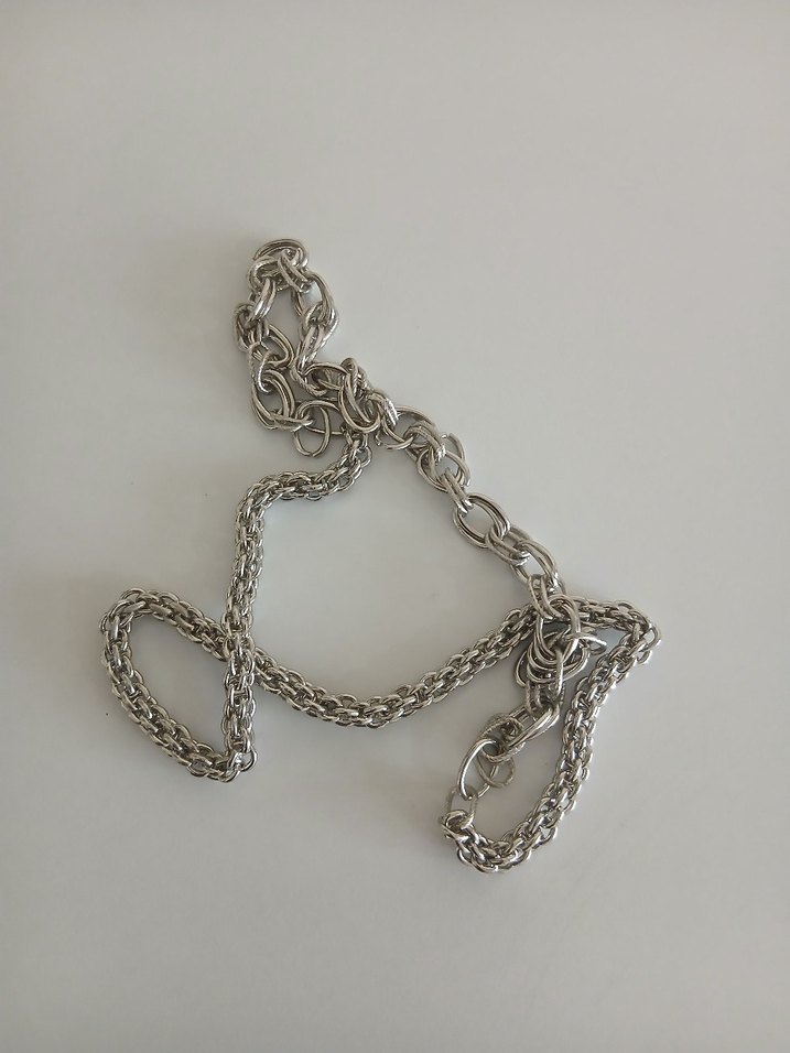 Gri renkte, zincir detaylı ve minimal yılan deseni bulunan kadın el zinciri, günlük kullanıma uygundur.