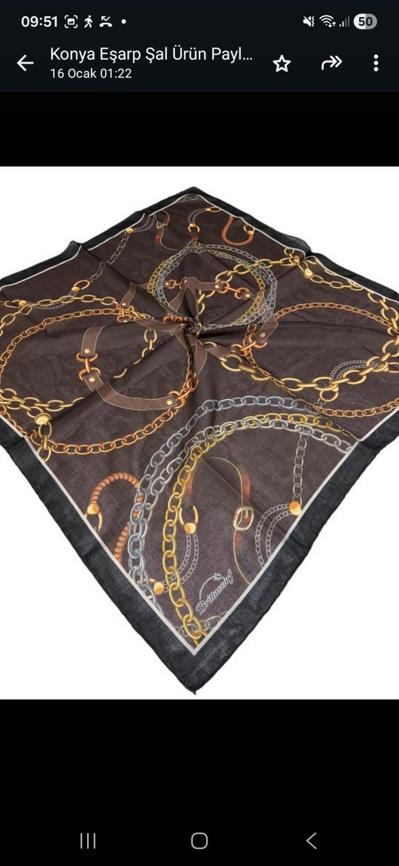 Yumuşak pamuklu kumaştan, zincir detaylı kahverengi kadın eşarp.