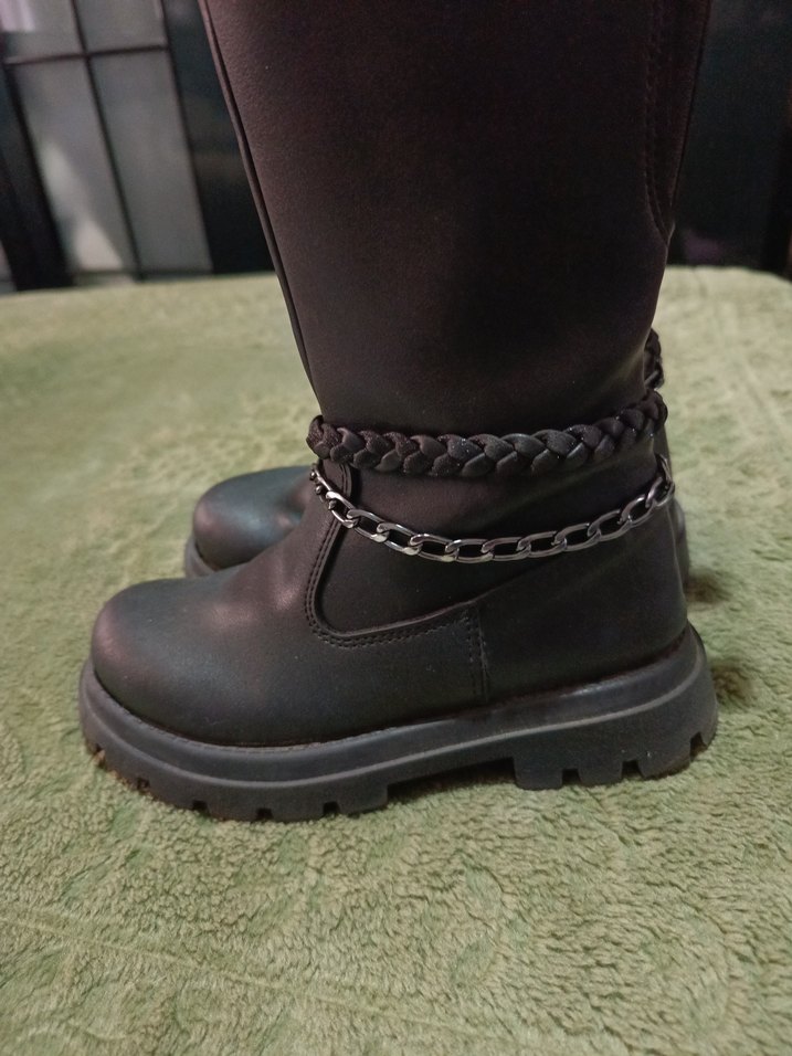 Zincir detaylı kahverengi deri gotik stiletto topuklu bot, günlük kullanıma uygun trendi rahat bir seçenek. 31 numara. kız çocuğu çizmesi