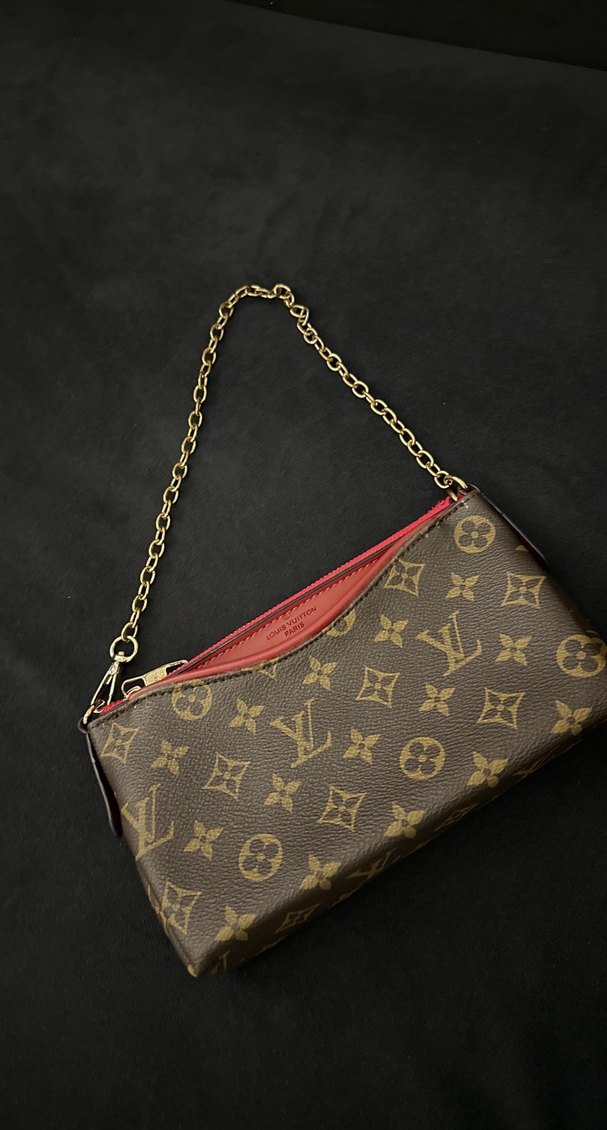 Kahverengi deri kadın çanta, parlak baskılı desene ve zincir detaya sahiptir. Modern klasik tarzı Paris şıklığıyla buluşturur, günlük kullanıma uygundur.