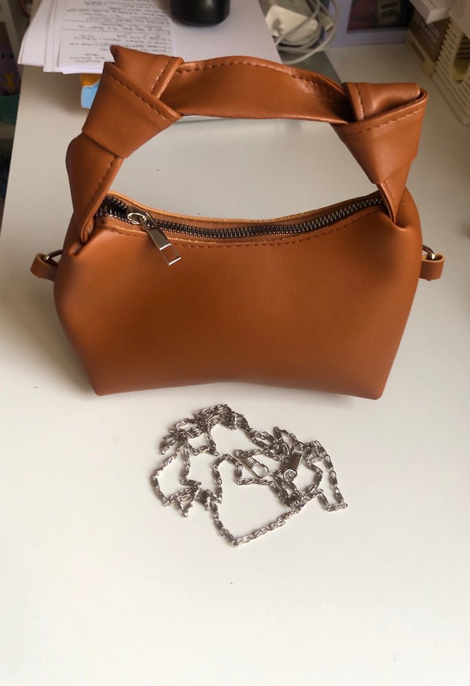 Zincir Detaylı Kahverengi Deri Kadın Çanta