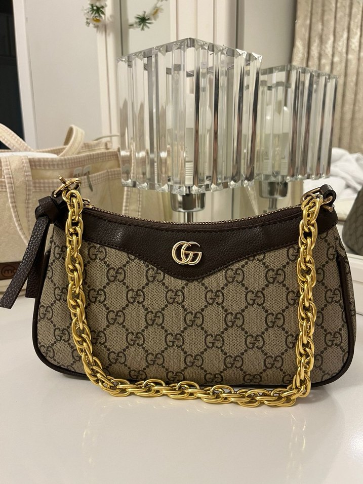 Kahverengi deri ve yılan deseniyle tasarlanmış, altın renk zincir detaylı klasik ve modern tarzda kadın çantası. Günlük kullanıma uygun.