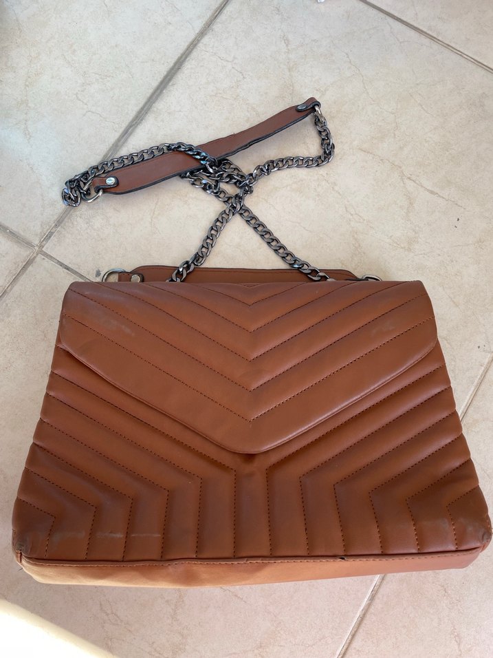 Zincir Detaylı Kahverengi Deri Kadın Çanta