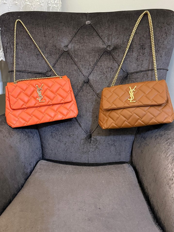 Parlak kahverengi deri, zincir askılı, desenli kadın çantası, günlük sokak stili için uygun.