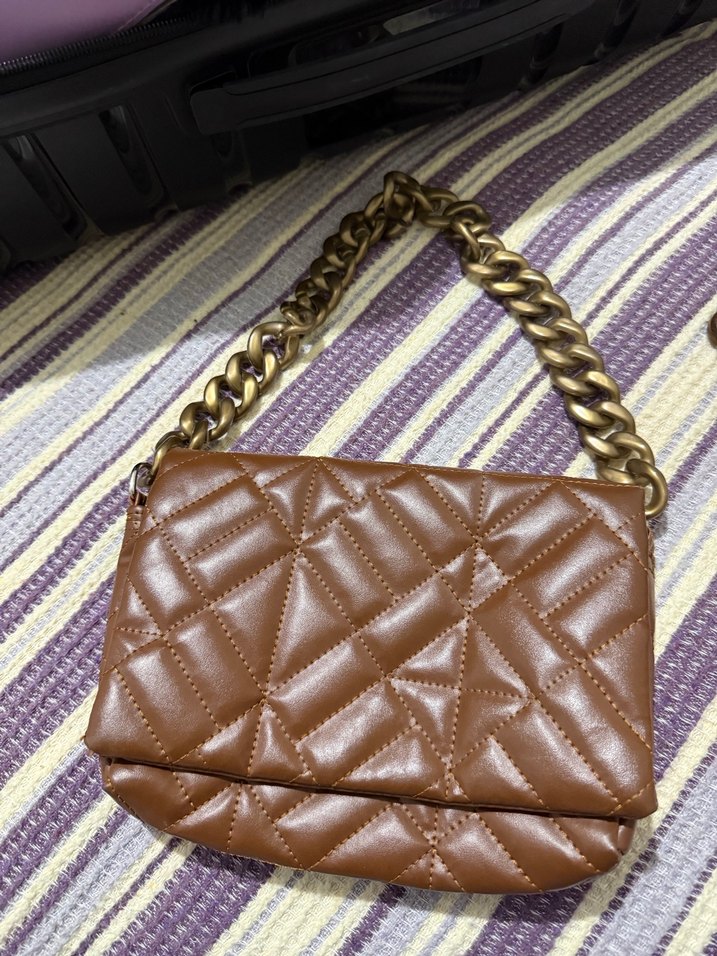 Zincir Detaylı Kahverengi Deri Kadın Çanta