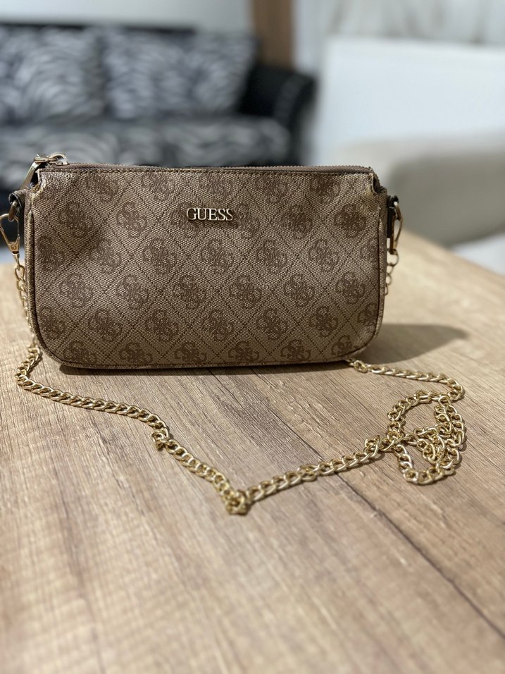 Zincir Detaylı Kahverengi Guess Omuz Çantası
