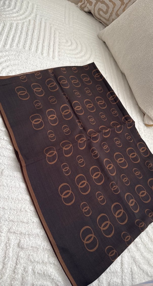Zincir detaylı koyu kahverengi kadın şal, yumuşak sentetik kumaştan, rahat ve bohem tarz için uygun. İmanoor orjinal şal sıfır ürün