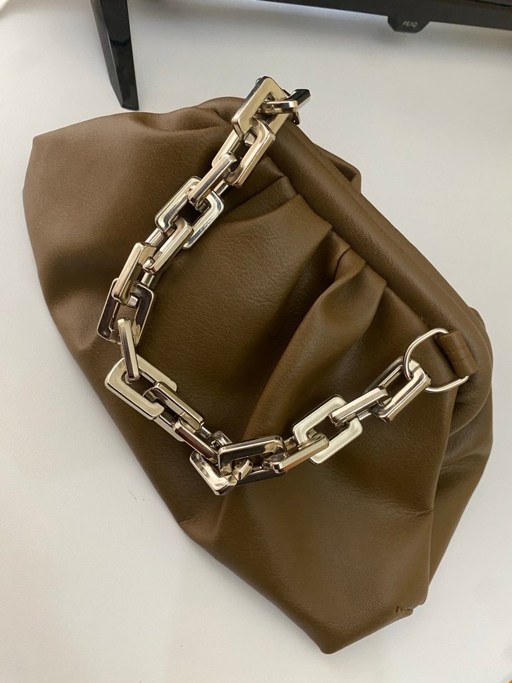 Parlak kahverengi, zincir detaylı kadın el zinciri. Sokak stiliyle modaya uygun, avangart bir görünüm sunar. Günlük kullanıma uygundur. ✨