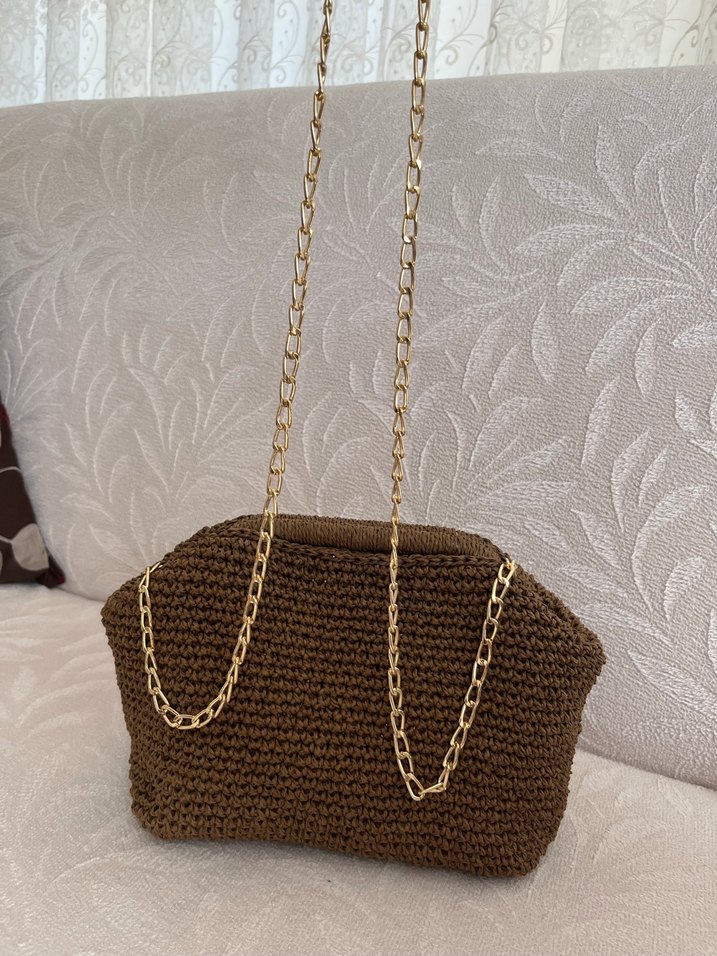 Zincir Detaylı Kahverengi Örgü Kadın Çanta