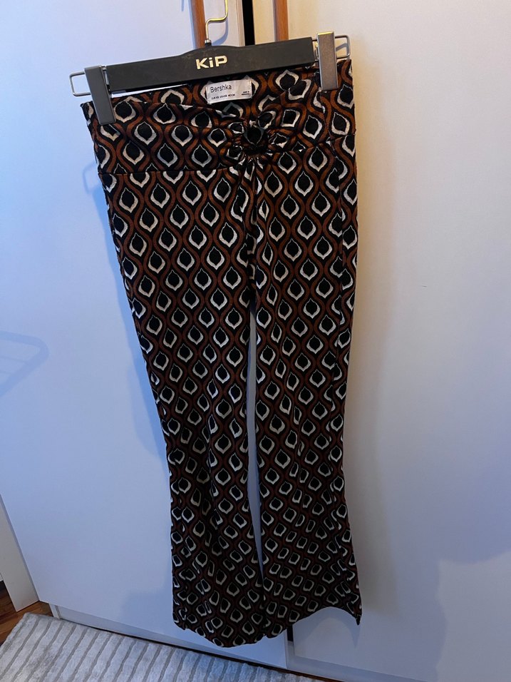 Zincir Detaylı Kahverengi Yılan Desenli İspanyol Paça