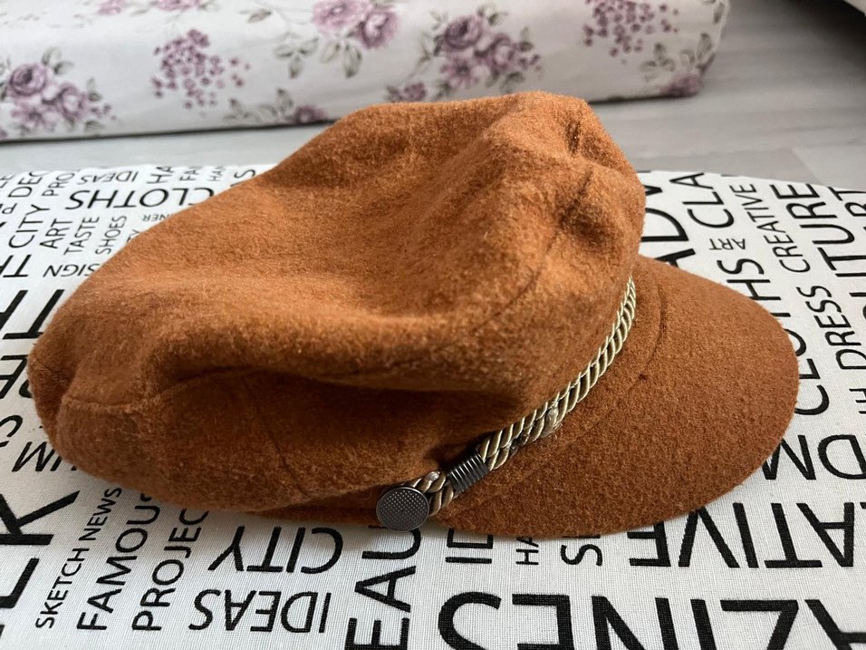 Zincir Detaylı Kahverengi Yün Kadın Şapka