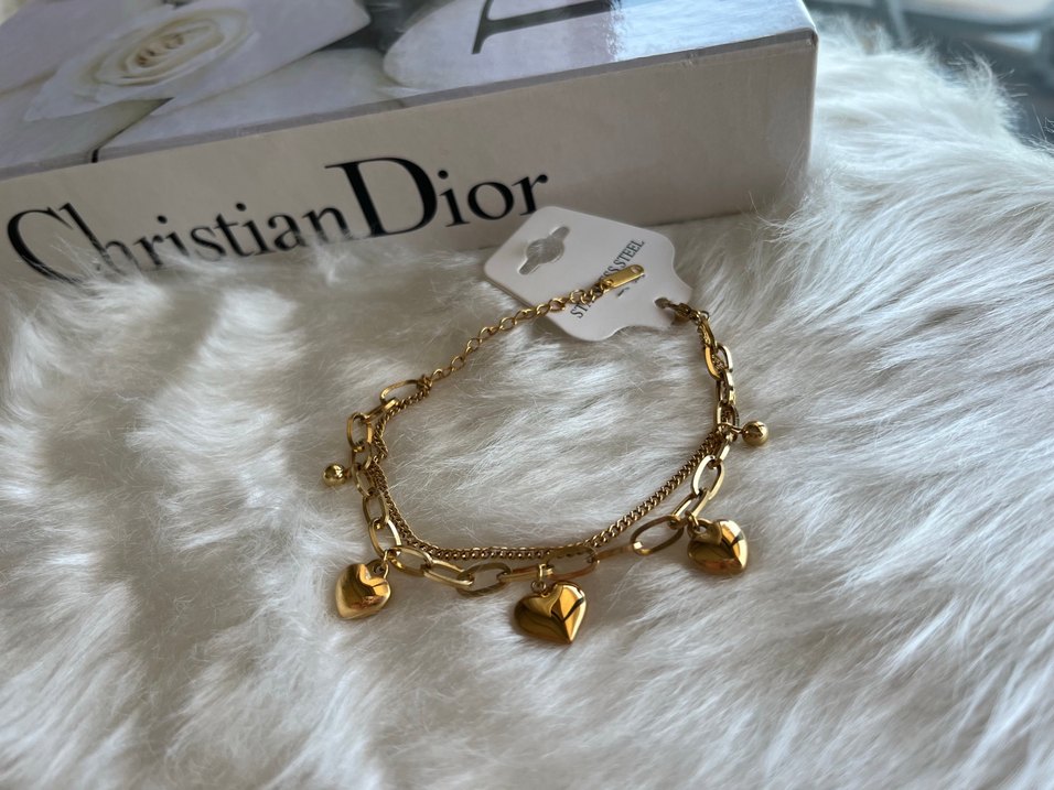 Zincir detaylı ve kalp figürlü altın renk bileklik, romantik akşamlar ve günlük şık sokak stiline uygun parça. Parlak ve desensiz tasarım. Ürünlerimiz altın kaplamadır. Ürünlerimiz kararma ve solmaya dayanıklıdır. Ürünlerimiz altın kaplama olduğu için alerji yapmamaktadır.