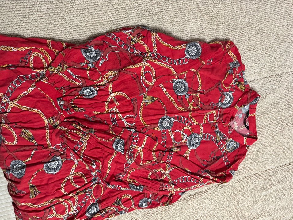 Parlak kırmızı tekstil üzerine zincir ve çiçek detayları bulunan bohem tarzda kadın şalı. Retro ve hippie havası katıyor.