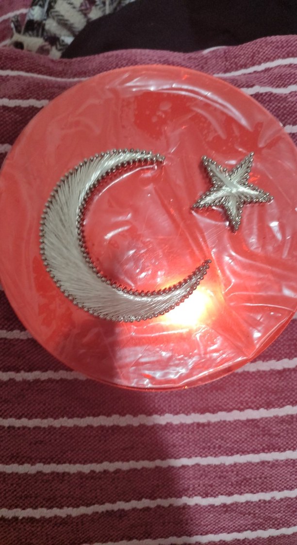 Zincir Detaylı Kırmızı Nakışlı Ay Yıldız ev dekarasyon