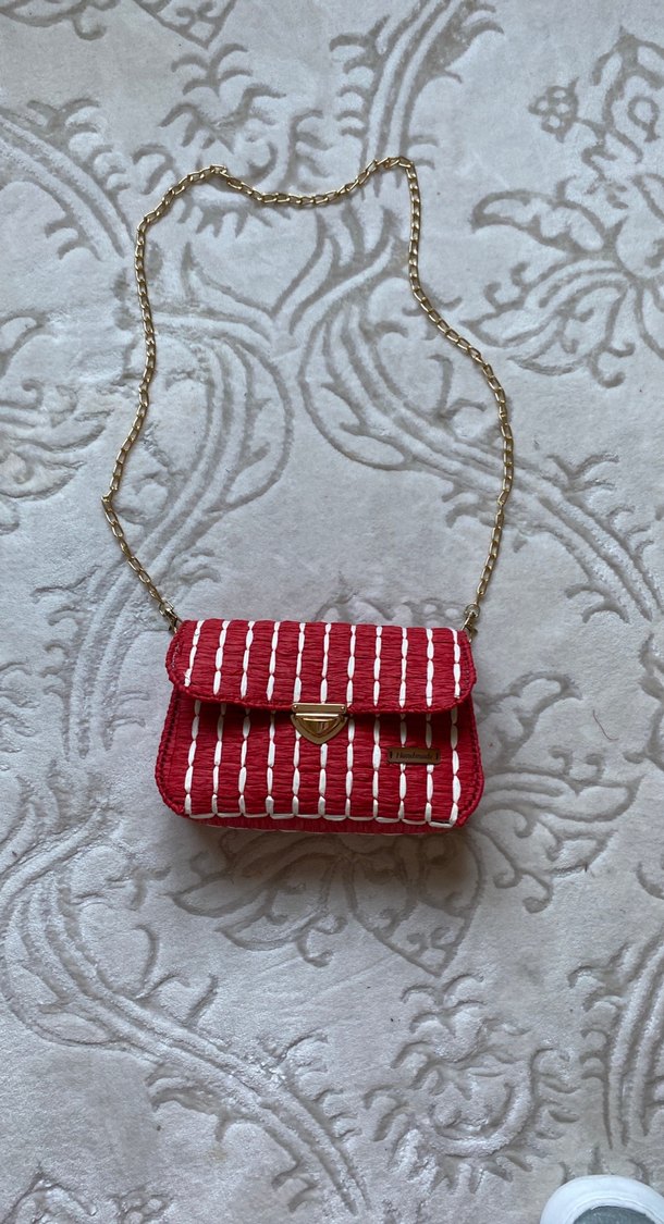 Zincir Detaylı Kırmızı Nakışlı Kadın Çanta