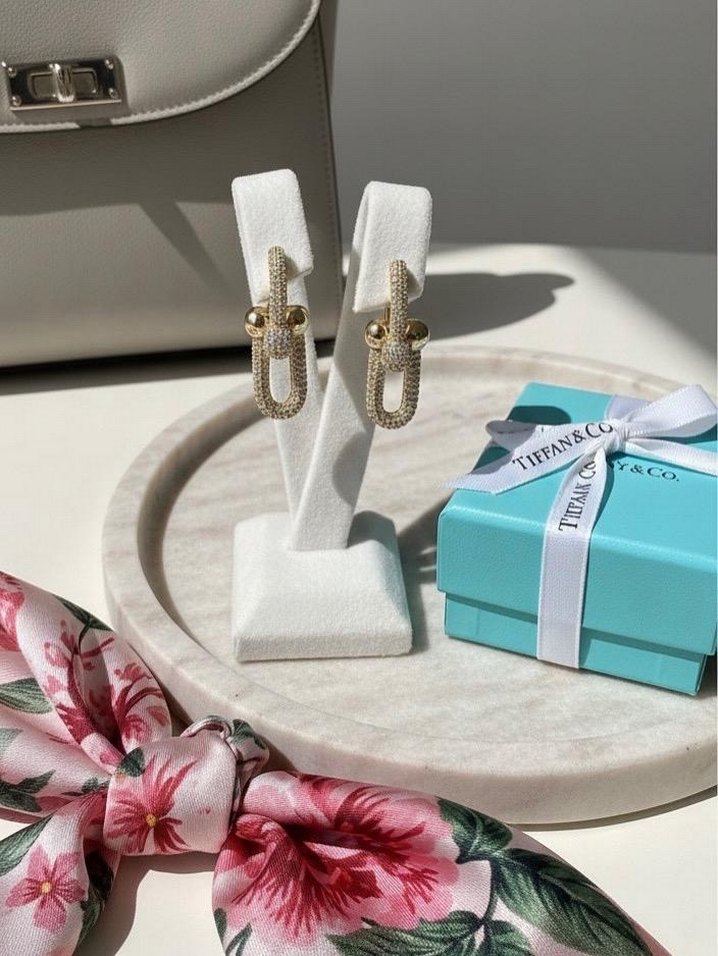 Zincir Detaylı Kısa Altın Küpe tıffany go