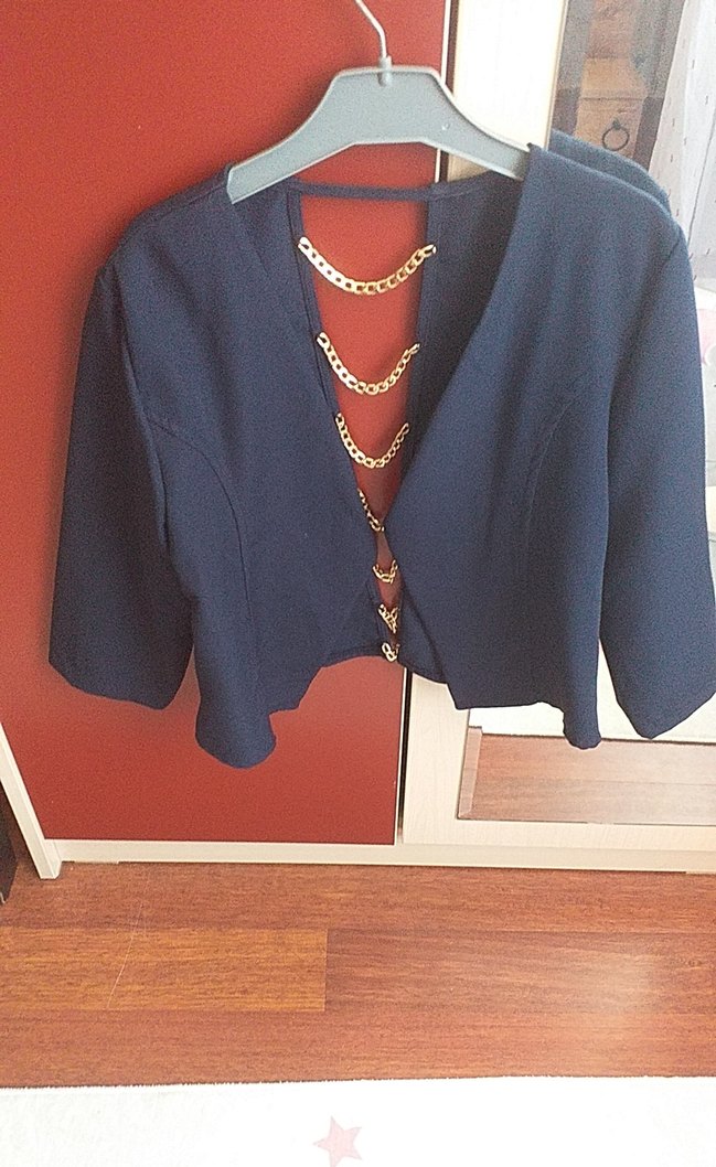 Zincir Detaylı Kısa Mavi Kadın Blazer