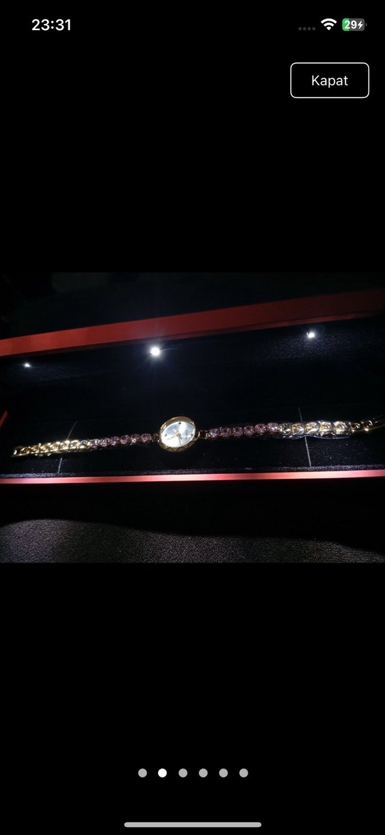 Zincir detaylı, altın renkli kadın saati, klasik zarafet ve göz alıcı karşı kültür tarzını bir araya getiriyor. ⌚