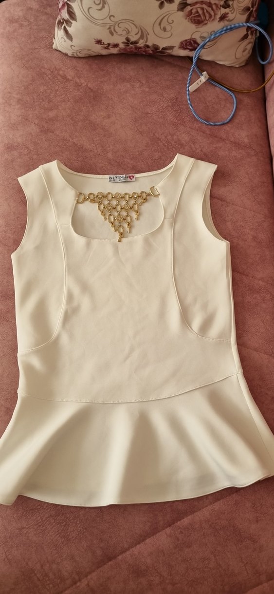 Zincir Detaylı Kolsuz Mini Beyaz Bluz