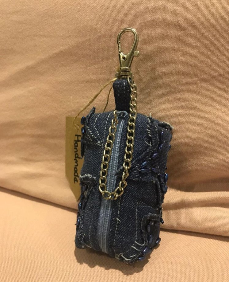 Koyu mavi renkli biker tarzı anahtarlık, zincir ve fermuar detaylarına sahiptir. Sokak stiline uygun, sağlam klipsli bir üründür.