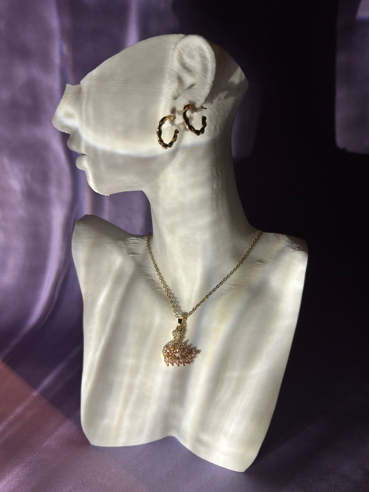 Zincir detaylı, parlak kuğu desenli altın kolye, klasik şıklığı bohem dokunuşla birleştirir. Günlük kullanım için uygundur.