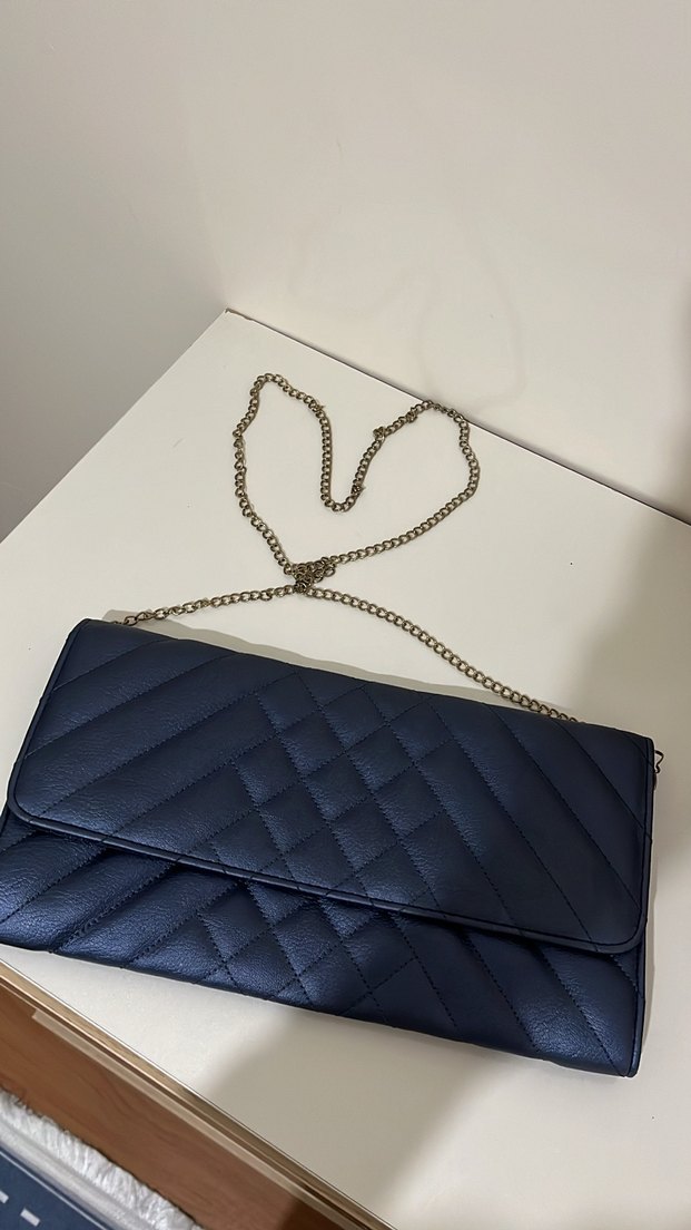 Zincir detaylı ve kapitone desenli lacivert deri kadın çantası, klasik zarafet ve günlük sokak stili için uygundur. Hiç kullanılmadı temiz ürün