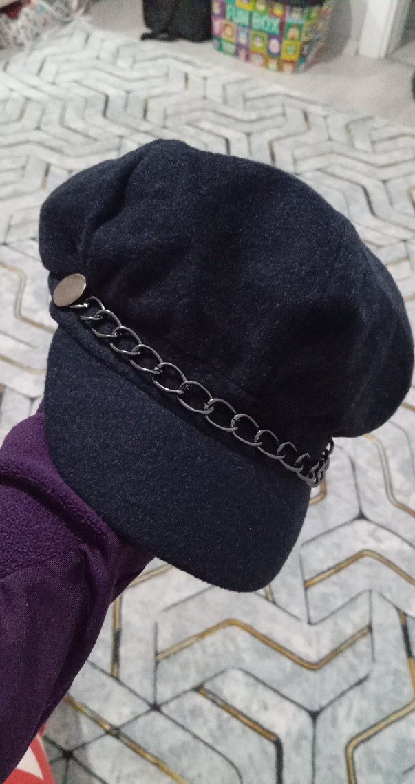 Zincir Detaylı lacivert Yün Kadın Şapka