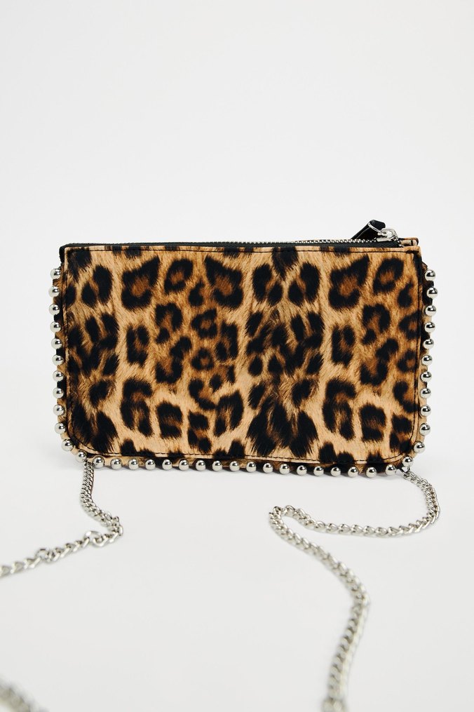 Zincir Detaylı Leopar Desenli Deri Kadın Çanta