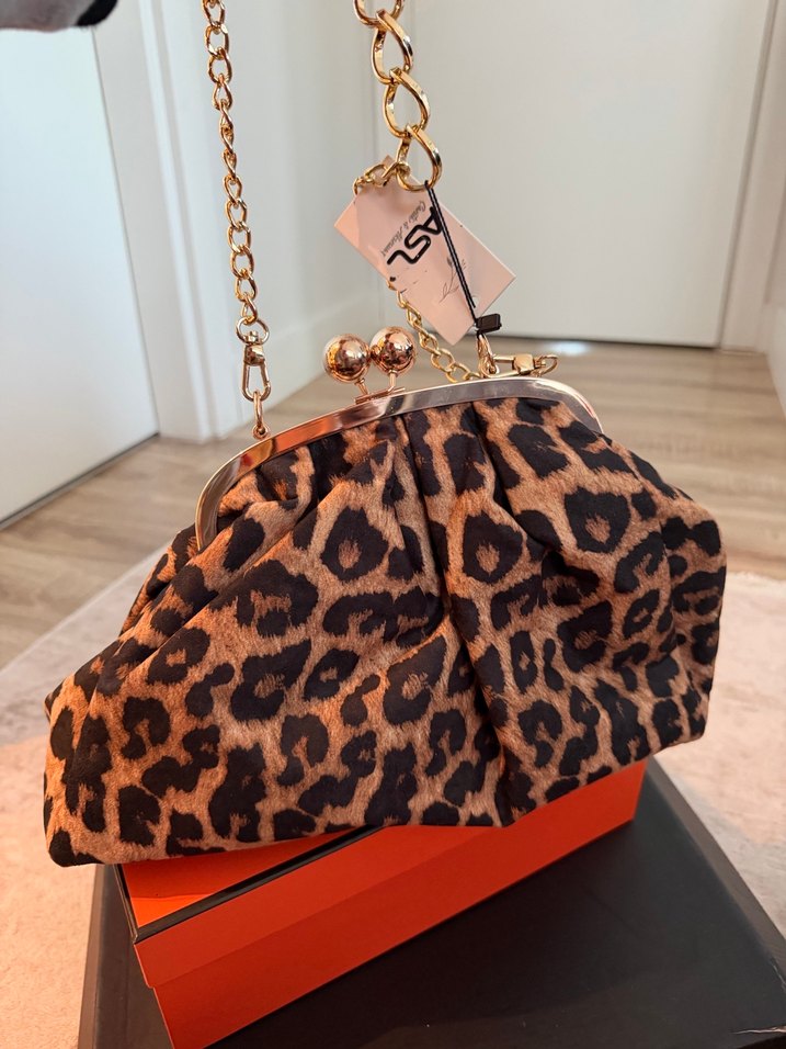 Zincir Detaylı Leopar Desenli Kadın Çanta